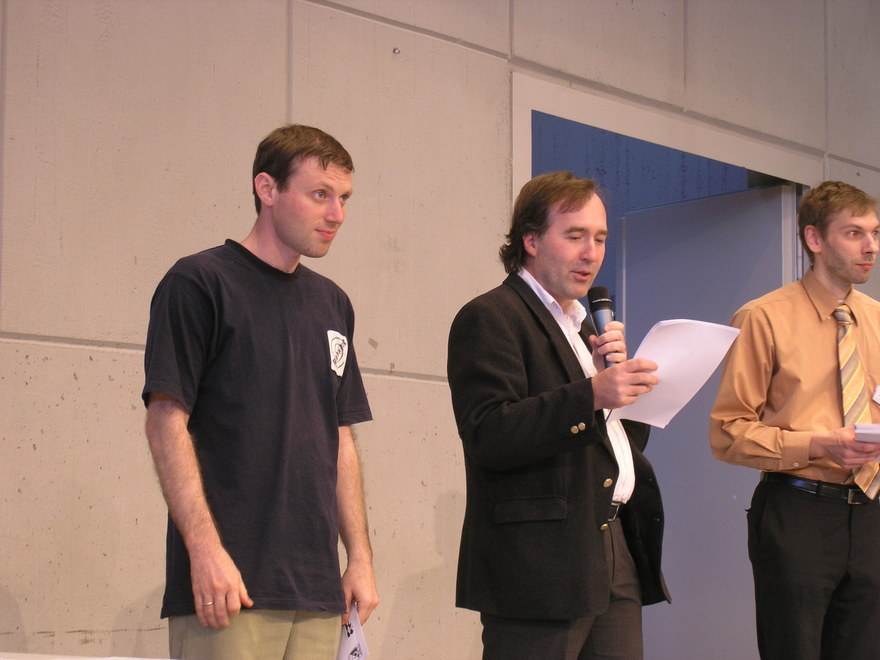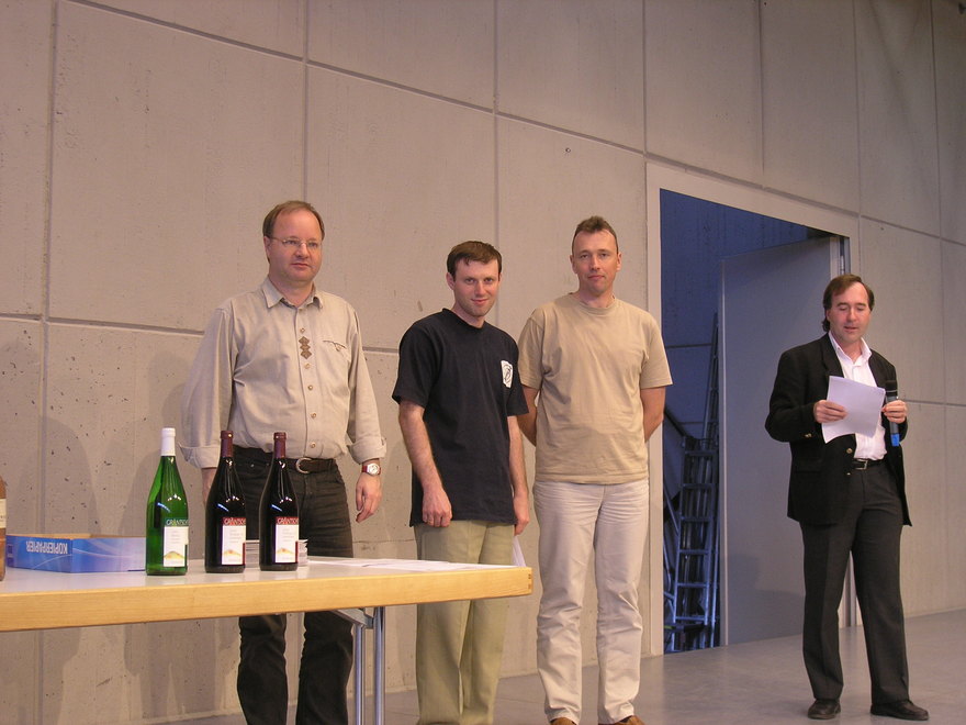 | Der Sieger Sergej Ovsejevitsch, hier mit Turnierleiter Michael Meier und Philippe Leick |